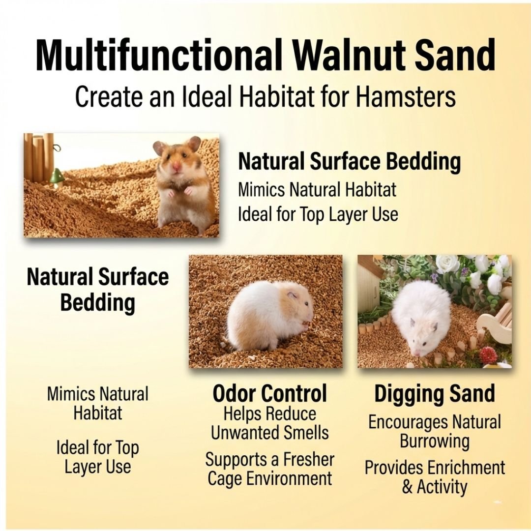 Premium Walnut Sand Hamster Bedding 1500g – Low Dust Natural Walnut Shell Substrate