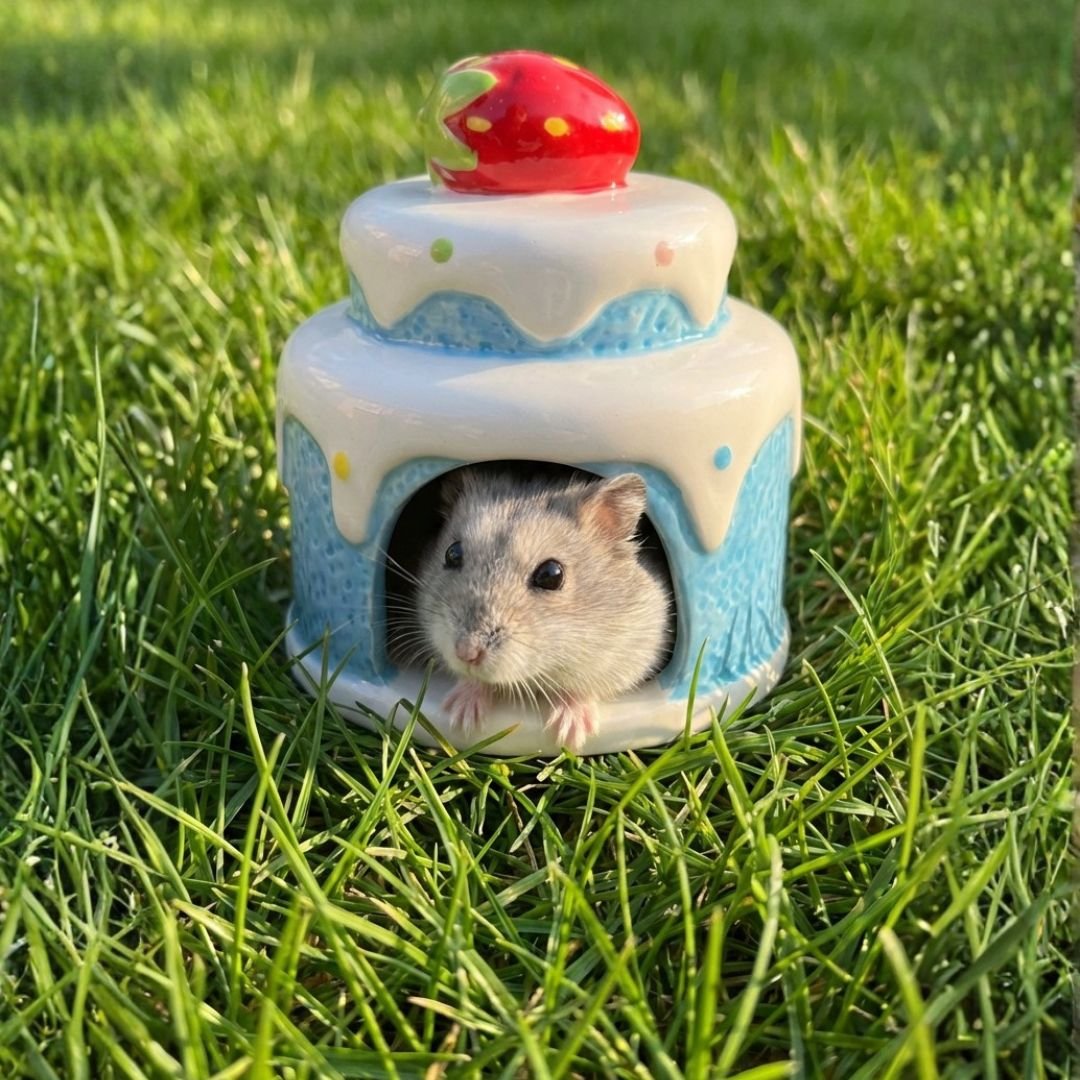 Ceramic Dwarf Hamster House Pink – Compact Cooling Hideout for Small Breeds