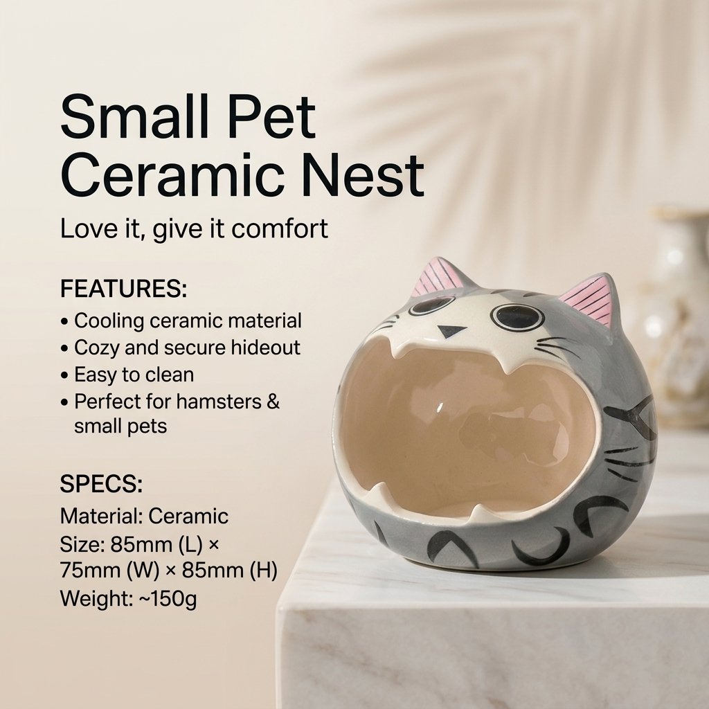 Gray Cat Small Pet Ceramic Nest Cooling Hideout for Hamsters and Small Pets